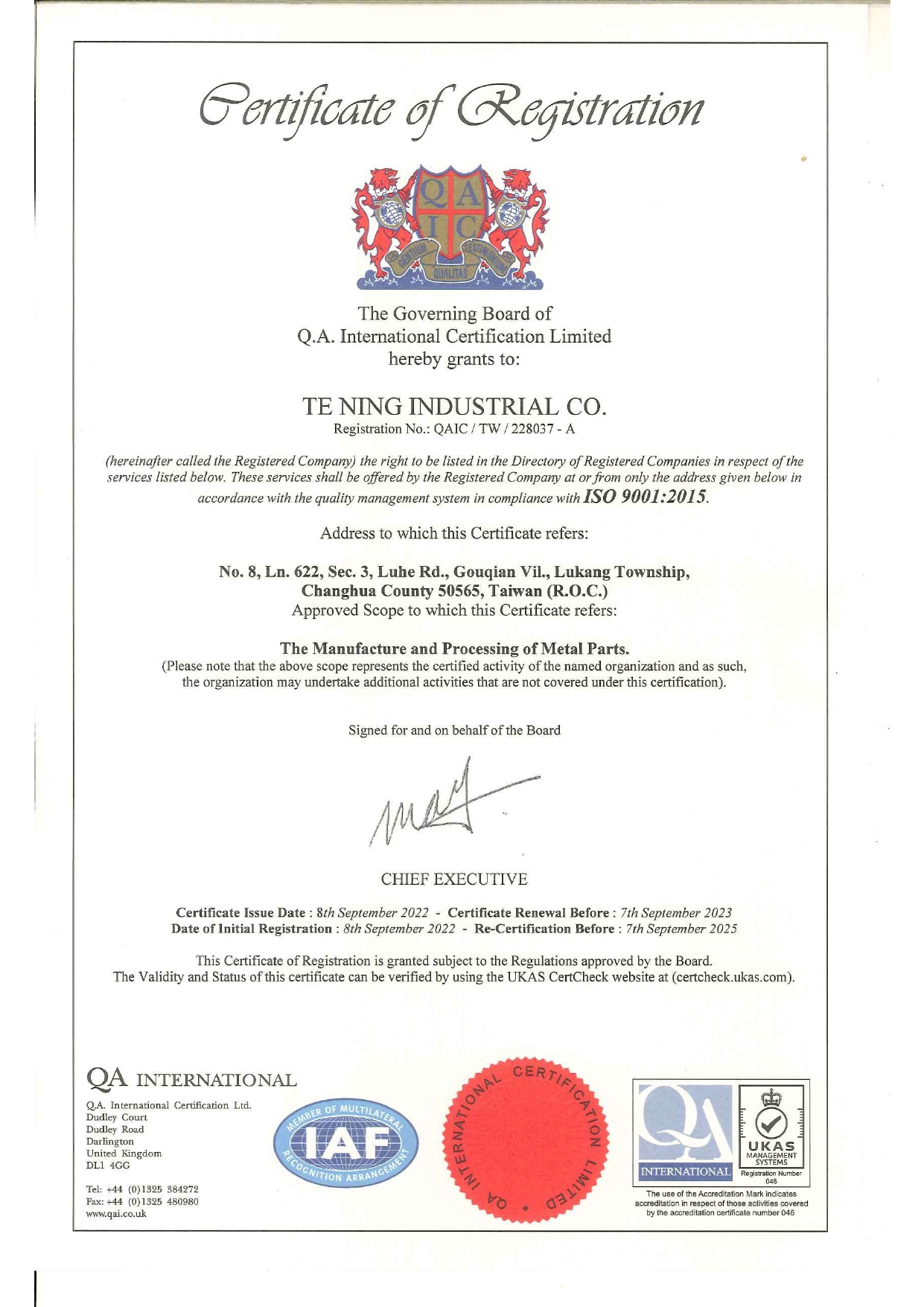 TE NING values the importance of measuring methodologies, we use the latest detection technology and precision measurement instruments to inspect each batch of products and with certificiate of ISO 9001:2015